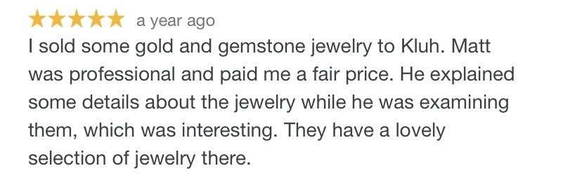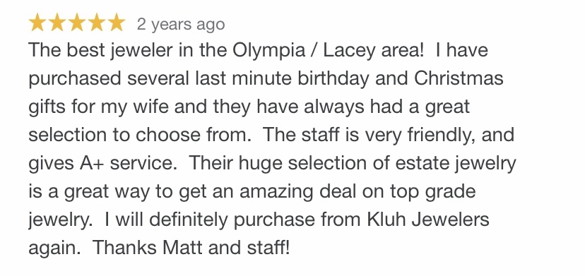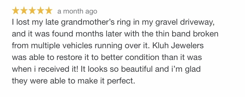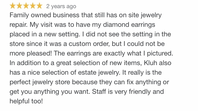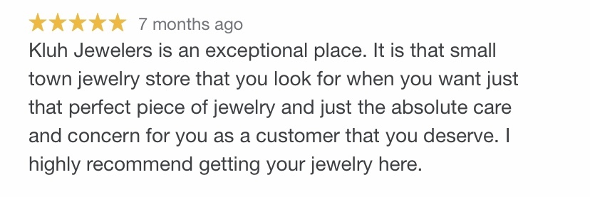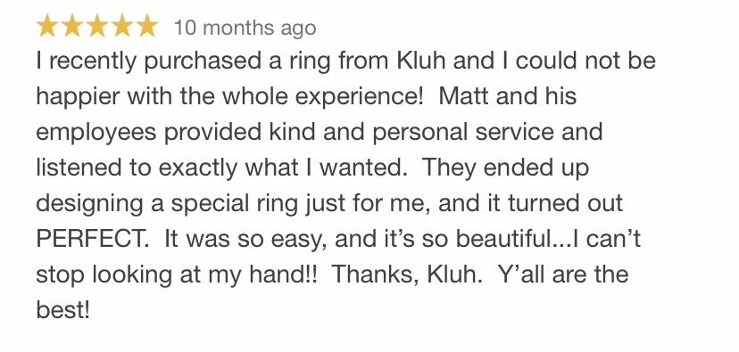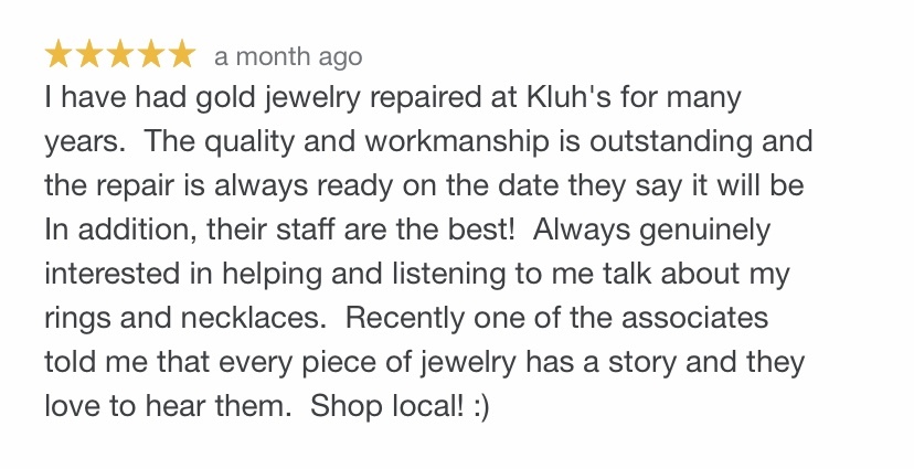 "If you enjoyed your experience with Kluh Jewelers please leave us a review! If there is something we could improve in please contact me and I will do everything I can to fix it!"